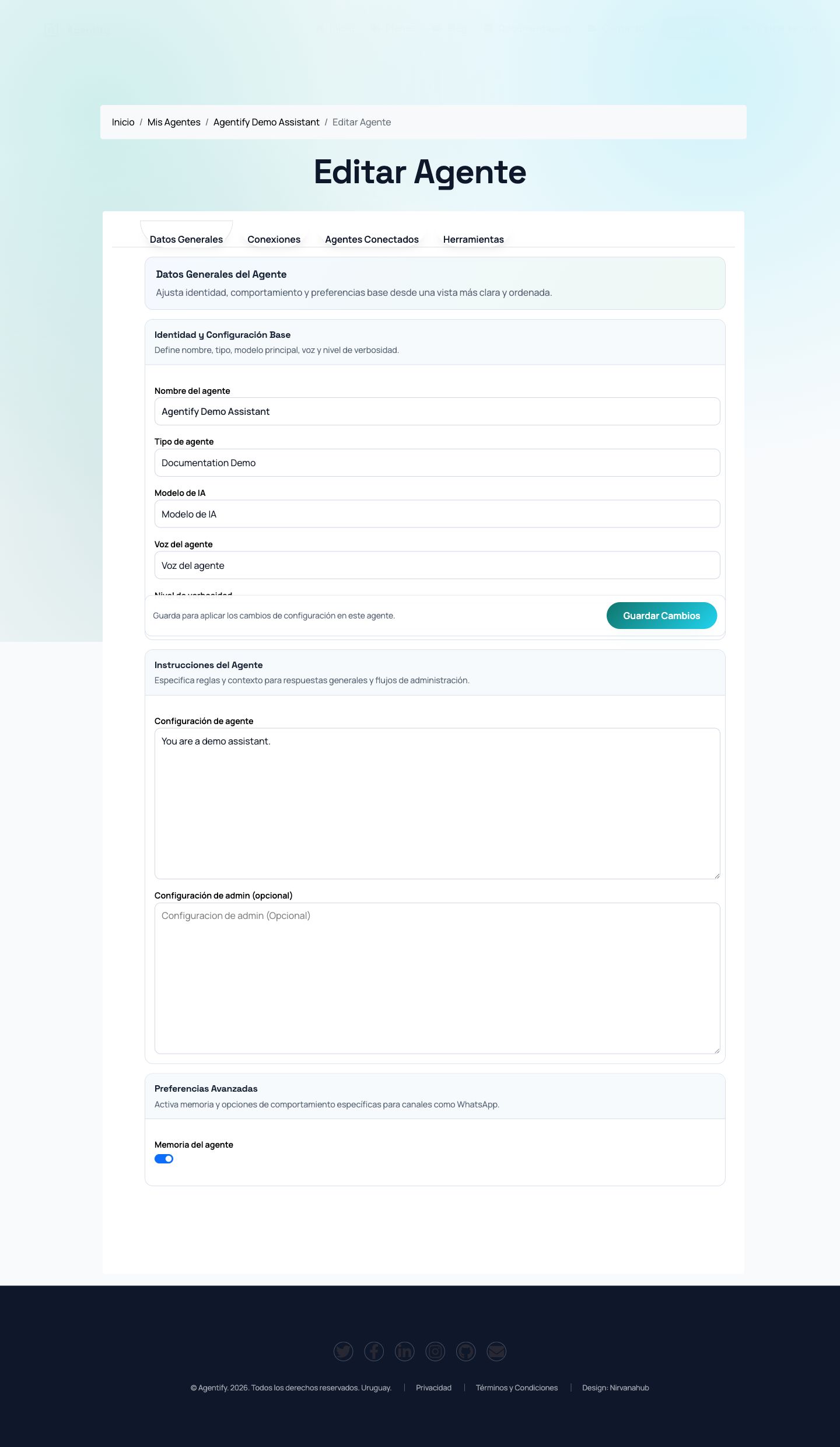 - Configurar conexiones y herramientas antes de atender conversaciones reales.