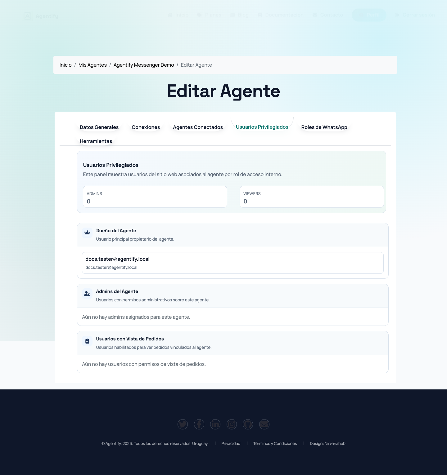 3.2.4 Pestaña: Usuarios Privilegiados (solo agentes Messenger)