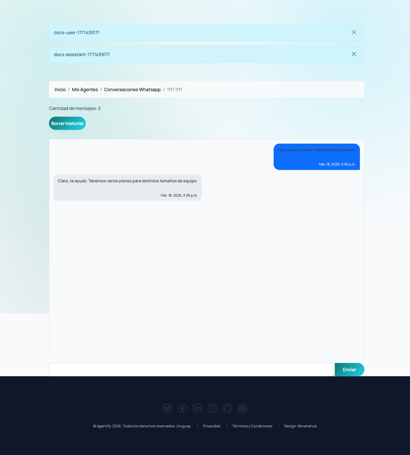 - Limpiar historial de una conversación.