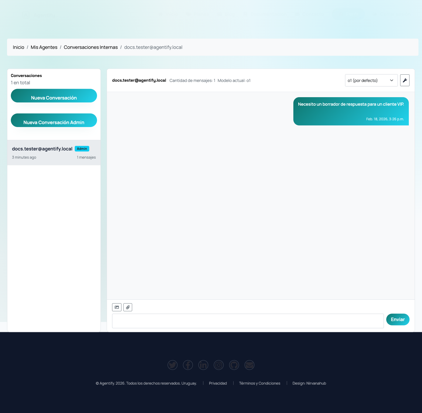 Para pruebas internas del equipo, Agentify permite conversaciones internas por agente: