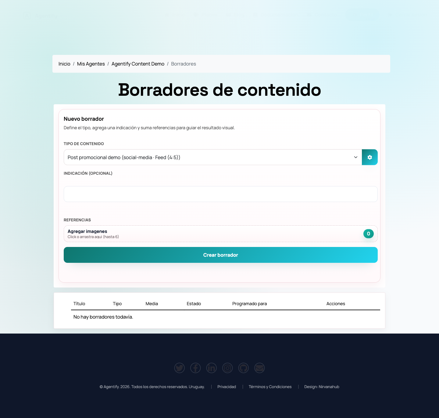 - Presiona Crear borrador o entra a Borradores para editar uno existente.